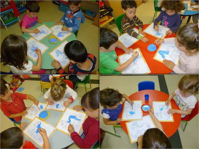 Terminamos el trimestre conociendo a otro artista, Franz Marc, de estilo diferente a Andy Warhol, pero del que hemos visto algunas de sus obras en las que los colores rellenaban fondos y paisajes y pintaba a muchos animales. Uno de sus favorito fue "El caballo azul" y a nosotros nos ha gustado muchísimo por eso hemos querido pintarlo igual que él.